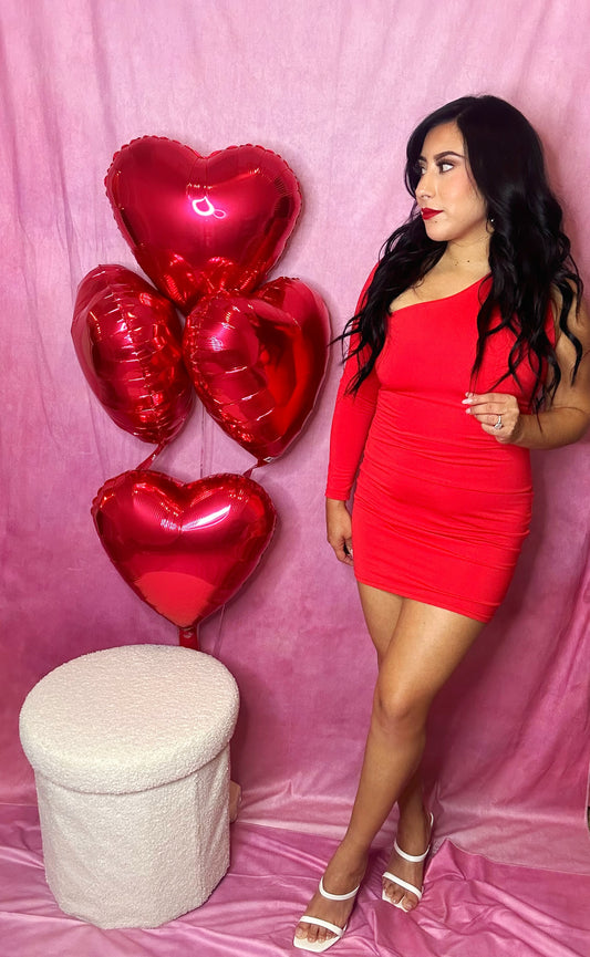 Mia Red One Shoulder Asymmetrical Dress Long Sleeved