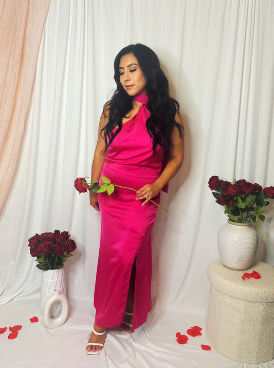 Mia Red One Shoulder Asymmetrical Dress Long Sleeved