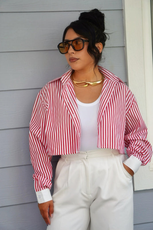Lizbeth pinstripe cropped button up shirt