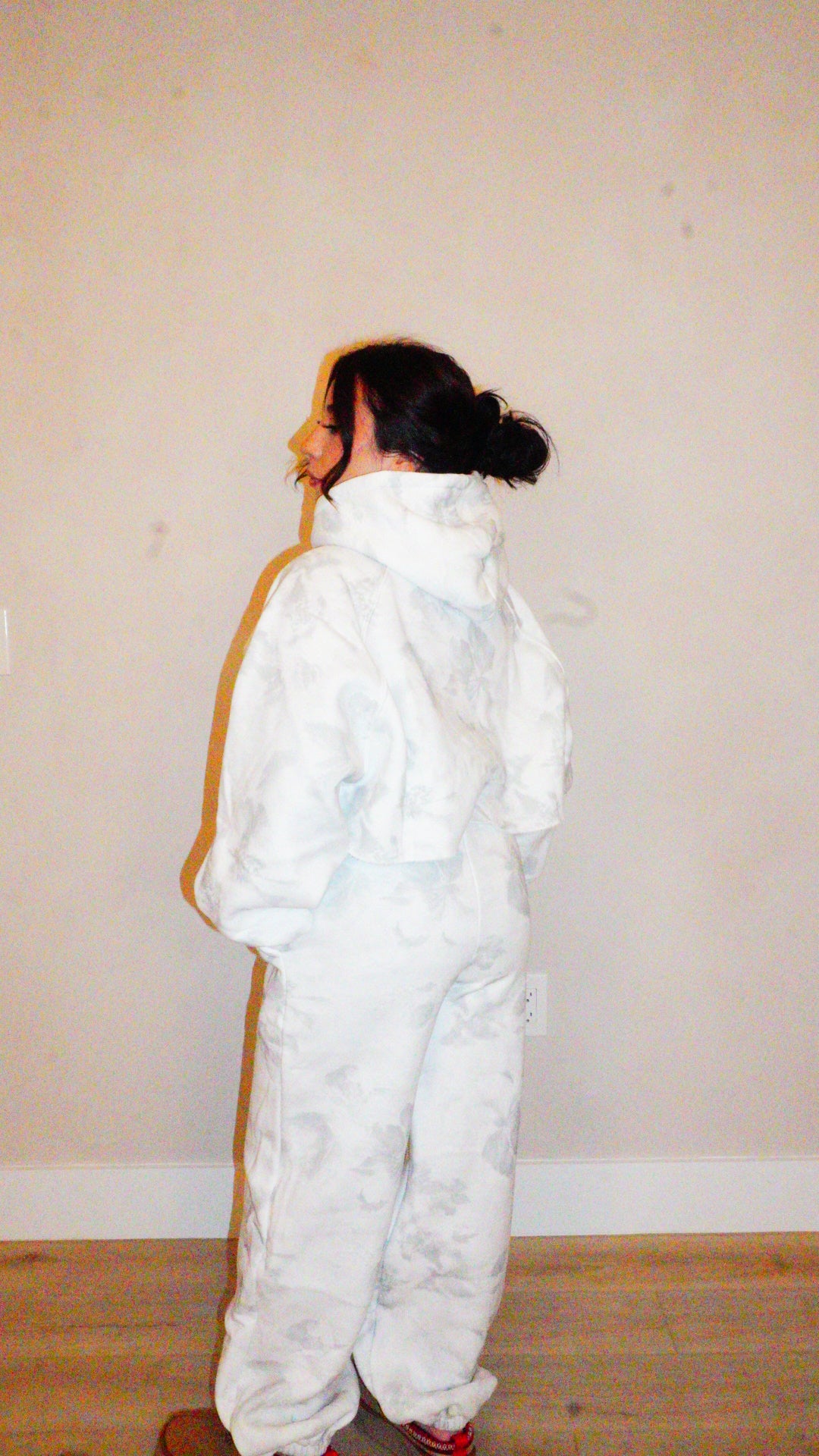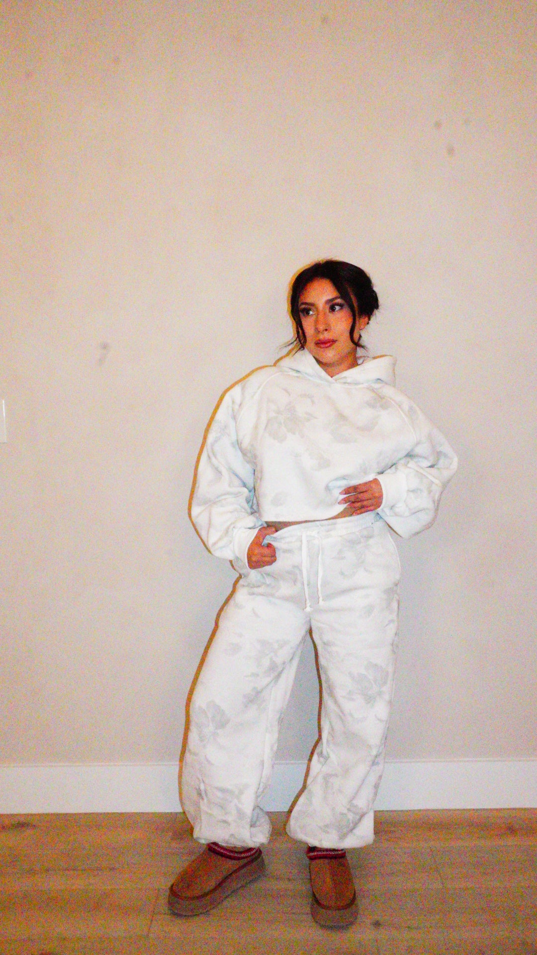 Introducing the Brenda Flower Washed Hoodie Set—your new excuse to stay cozy without compromising on cool. These ultra-soft fleece bottoms are designed for those who refuse to choose between comfort and style. The relaxed fit pairs perfectly with a subtle tonal wash that whispers sophistication, while adjustable drawstring and gathered cuffs keep things street-ready and undeniably chic. Lounge like you mean it.